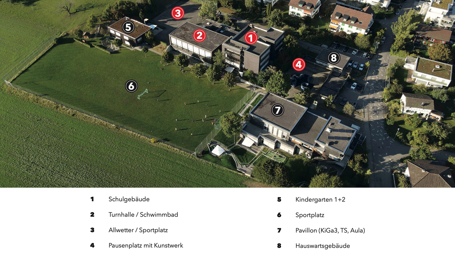Die Schulanlage und der Pavillon werden an die Fernwärme angeschlossen. Der Bau der Anschlussleitungen ist 2024 geplant. Die Gebäude auf dem Areal inklusive Hallenbad werden somit künftig mit Fernwärme geheizt – ausser die Kindergärten 1 und 2, für die weiterhin die bestehende Luft-Wasser-Wärmepumpe vorgesehen ist. Für die Stromerzeugung wird auf dem Dach der Turnhalle sowie an den Fassaden der Turnhalle und des Schulhauses eine Photovoltaikanlage installiert. Sie wird mehr Strom produzieren, als die Schule benötigt: Die über das ganze Jahr geschätzte Produktion beträgt 155 MWh und der aktuelle Verbrauch 140 MWh. Der gemittelte Jahres-Eigenverbrauchswert liegt bei 55 Prozent. Ungeeignet für eine Photovoltaik-Anlage ist – wegen verschiedener Haustechnik-Aufbauten und Installationen – das Schulhausdach.